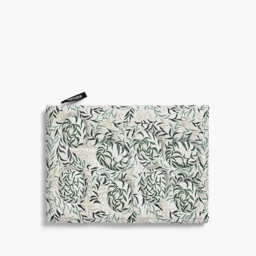 Un neceser creado para llevar los elementos esenciales de una experiencia sensorial y decorado con un estampado xilográfico aplicado mediante una técnica tradicional india.