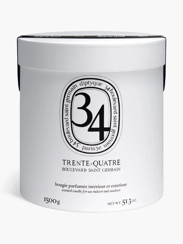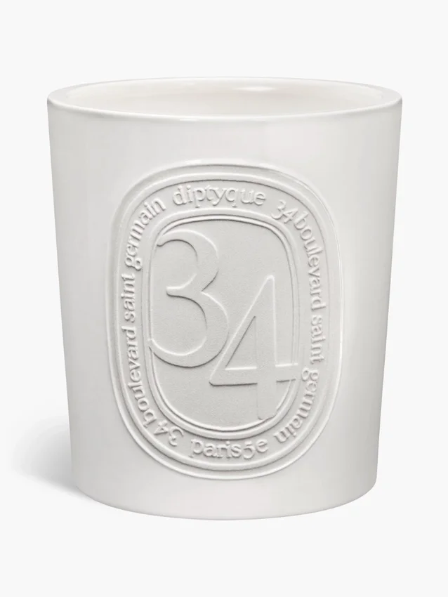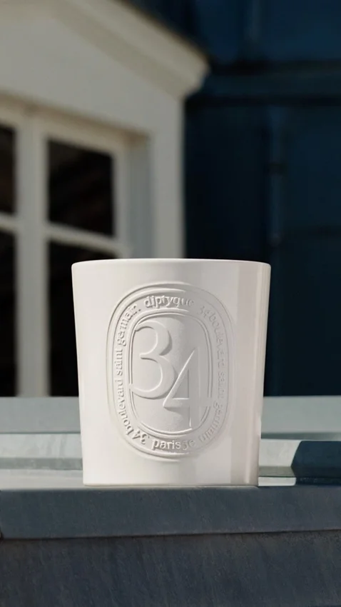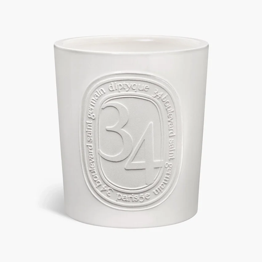 En su recipiente de terracota hecho a mano, la vela 34 Boulevard Saint Germain refleja un arte de vivir y encapsula el recuerdo olfativo de la primera boutique de Diptyque.