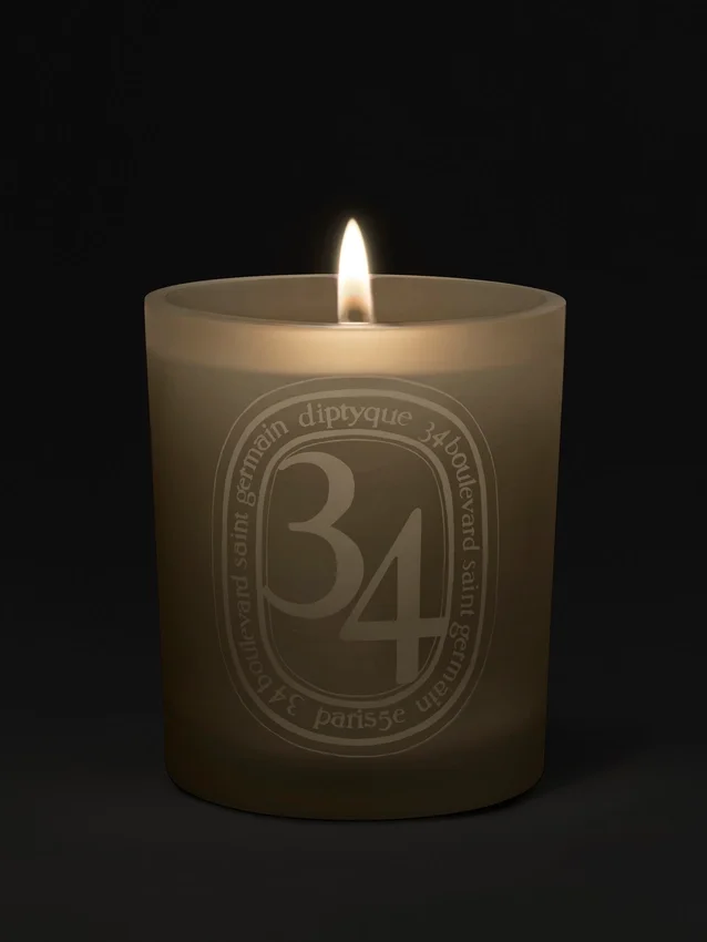 Elegante e inclasificable. La vela perfumada 34 Boulevard Saint Germain difunde los perfumes frescos y verdes del musgo y las hojas de grosella negra.